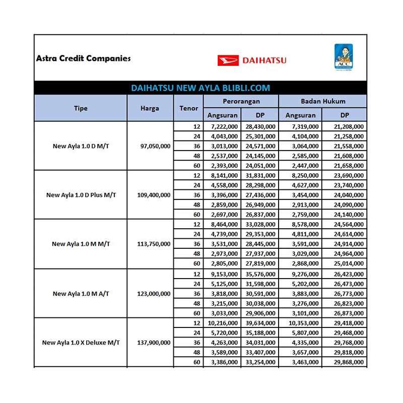 44 rows Daihatsu-XeniaCom menyediakan Promo Paket Kredit Murah Ayla bagi. 44 rows Harga Kredit Murah Daihatsu Ayla Mei 2021 Kredit Daihatsu Ayla bisa. Harga mobil ayla baru 2021 untuk tipe ini adalah sekitar Rp.